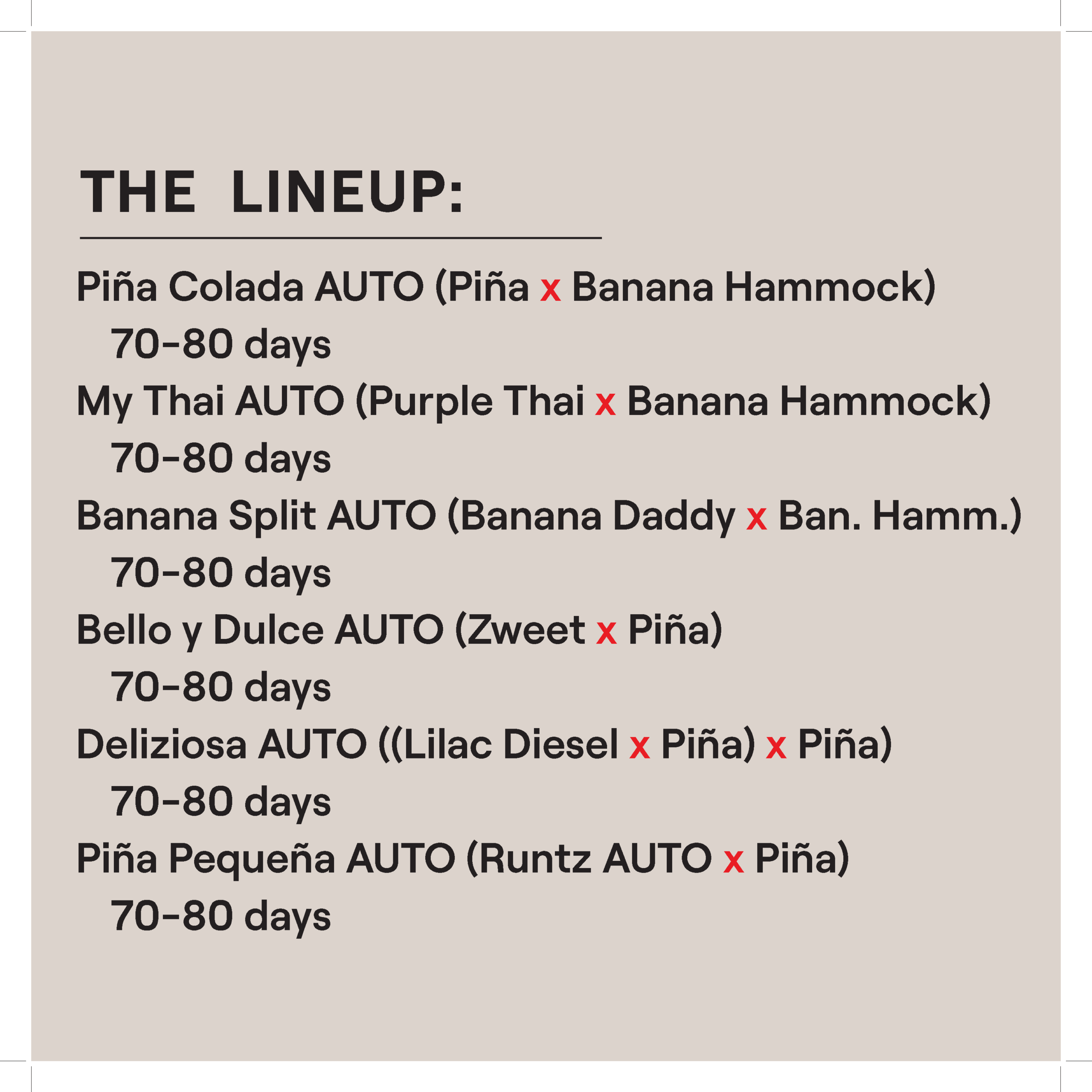 - Deliziosa: (Lilac Diesel x Piña) x Piña
