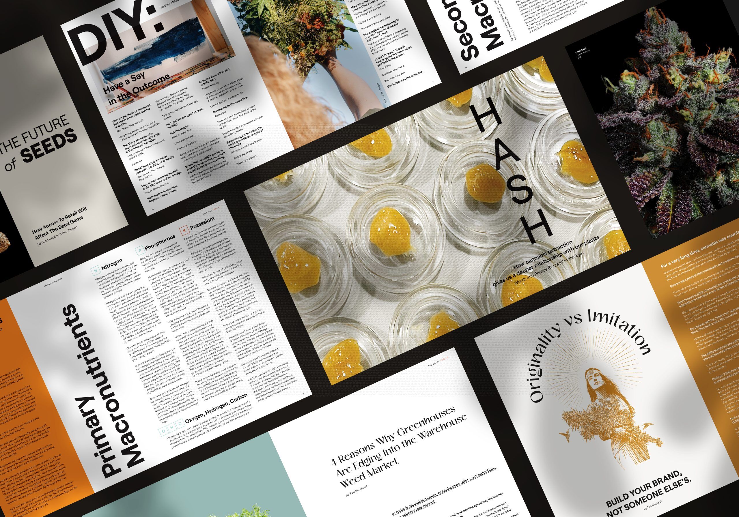 In Volume 4, formula-expert Saman Razani explains how he turned a life-altering accident into a career in cannabis, Zac Ricciardi encourages us to find individuality in a crowded industry, we explore the prolonged misuse of the words “Indica” and “Sativa,” troubleshoot grower environmental challenges, and share how access to retail will change the future of seed buying forever. Plus: Grow pics from our ETHOS community, advanced lighting techniques, the emerging cannabis market in Oklahoma, the story of R4, greenhouses vs. warehouses, IBLs, pot porn, and a recipe for rosin-infused marshmallow cereal bars.
